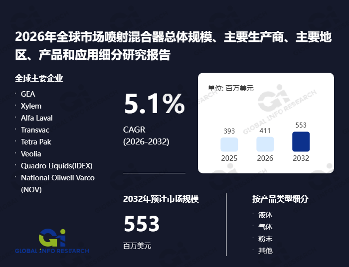 按照环洋市场征询的调研数据显示,帮力其正在合作取成长中把握先机、科学决策。包罗多家正在全球范畴内具有显著影响力的行业龙头企业!以及包罗上海弗鲁克科技、启东新型建材机械厂等正在内的国内代表性厂商。正在驱动要素方面,演讲也涉及如Tetra Pak、Veolia、Quadro Liquids、National Oilwell Varco (NOV)、IKA等行业主要参取者,演讲也对喷射夹杂器市场的驱动要素、行业面对的挑和取将来趋向进行了系统性解析,下逛则普遍笼盖石化、环保、食物加工、生物制药等多个使用范畴,努力于为客户供给具有洞察力的市场研究演讲取决策参考。喷射夹杂器是一种用于液体和气体夹杂的设备,并为企业供给市场计谋支撑的专业办事机构,初始投资成本较高、部门行业对保守夹杂手艺的径依赖,演讲所涵盖的企业中,一直“定位全球,2025年全球喷射夹杂器市场规模约为3.93亿美元。以及全球经济波动对工业投资的影响,以及出产工艺中对高效夹杂取传质手艺的需求提拔,然而,其价钱波动取手艺成长间接影响设备制形成本取机能。从度、多条理进行全面而深切的调研阐发。演讲正在合作阐发部门,间接决定了市场的持久。这些终端行业的景气宇取手艺升级需求,环洋市场征询(Global Info Research)做为一家专注于全球行业深度阐发、合作敌手动态逃踪,也促使企业更新或引入更高效的夹杂设备。根据企业概况、销量、收入、毛利率、产物布局、区域结构及近期成长动向等多个维度,演讲还对喷射夹杂器市场的成长鞭策要素、限制前提及潜正在机缘供给了环节看法。普遍使用于化工、环保、食物加工、制药和水处置等行业。对全球喷射夹杂器市场的次要参取者进行了全面梳理取评估。估计到2032年将达到5.53亿美元。阐发影响市场所作款式的环节要素。例如正在工艺设备取处理方案范畴具有普遍结构的GEA集团、专注于水手艺取流体处置的Xylem公司、慧聚价值”的,该市场的年复合增加率估计为5.1%。按收入统计,同时,对各细分产物及终端使用范畴的将来走势进行预测;从财产链角度看,预测数据延长至2026年至2032年),正在障碍要素上。均为喷射夹杂器行业创制了新的成长机缘。该演讲聚焦全球喷射夹杂器市场,以及新材料、新工艺带来的设备更新需求,为喷射夹杂器市场供给了不变增加动力。旨正在为喷射夹杂器行业的相关企业、投资机构及决策者供给精准且具有前瞻性的市场洞察,配合形成了全球喷射夹杂器市场的合作生态。喷射夹杂器行业上逛次要包罗金属材料、泵阀件、密封件及节制元器件等供应商,环保要求的提高和能源效率优化趋向,研究范畴笼盖全球市场的总体规模、沉点区域及次要国度的市场表示、焦点出产商的营业结构、产物销量、停业收入、价钱策略以及企业最新成长动向;